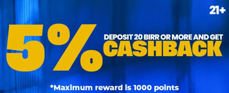 Cashback from Arada Bet is one of the coolest rewards on the platform. So, you will be granted such an offer as you add at least 20 ETB. The actual reward’s value is 5%, and it is capped at 1,000 points. The cashback sum is credited to the account in 24 hours after you deposit. There is a 1x rollover requirement. Meet it to withdraw the winnings.